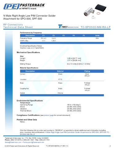 any representation or warranty regarding the suitability of the part described herein for any particular purpose, and Pasternack does not assume any liability arising out of the use of any part or documentation.