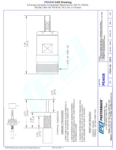PE4438 CAD Drawing N Female Connector Crimp/Solder Attachment for RG174, RG316, RG188, LMR-100, PE-B100, PE-C100, 0.100 inch PE4438 REV 1.1 3