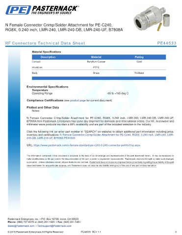 RF Connectors Technical Data Sheet PE44533