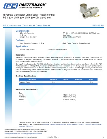 RF Connectors Technical Data Sheet PE44535