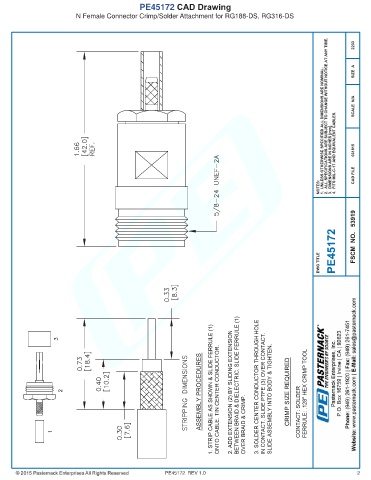 PE45172 CAD Drawing N Female Connector Crimp/Solder Attachment for RG188-DS, RG316-DS PE45172 REV 1.0 2