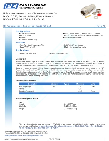 RF Connectors Technical Data Sheet PE4072