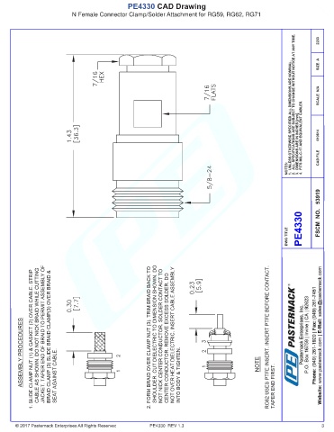 PE4330 CAD Drawing N Female Connector Clamp/Solder Attachment for RG59, RG62, RG71 PE4330 REV 1.3 3