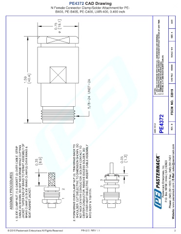 ASSEMBLY PROCEDURES 1. SLIDE CLAMP NUT (1) & GASKET (2) OVER CABLE. STRIP CABLE AS SHOWN. DO NOT NICK BRAID WHILE CUTTING JACKET. TAPER END OF BRAID TO PERMIT ASSEMBLY OF BRAID CLAMP (3) SLIDE BRAID CLAMP(3) OVER BRAID & SEAT AGAINST JACKET. 2. FORM BRAID OVER CLAMP NUT (3). TRIM BRAID BACK TO SHOULDER. CUT DIELECTRIC TO DIMENSION SHOWN. DO NOT NICK CENTER CONDUCTOR. SOLDER CONTACT TO CENTER CONDUCTOR. REMOVE EXCESS SOLDER. DO NOT OVER HEAT D