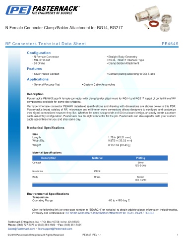 RF Connectors Technical Data Sheet PE4645