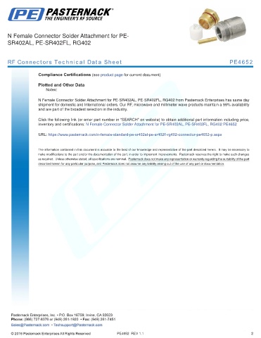 URL: https://www.pasternack.com/n-female-standard-pe-sr402al-pe-sr402fl-rg402-connector-pe4652-p.aspx