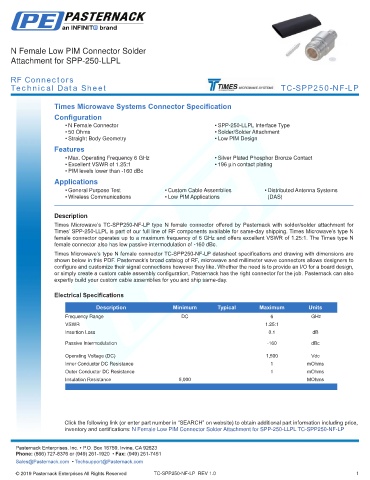any representation or warranty regarding the suitability of the part described herein for any particular purpose, and Pasternack does not assume any liability arising out of the use of any part or documentation.