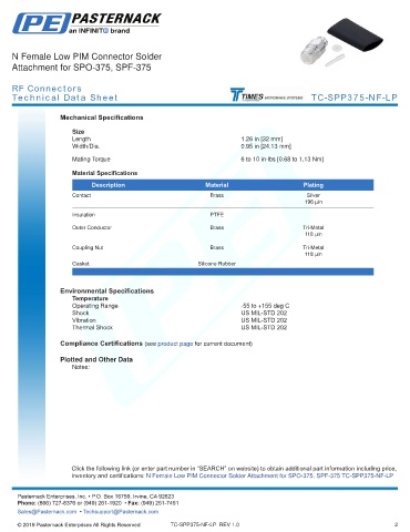 any representation or warranty regarding the suitability of the part described herein for any particular purpose, and Pasternack does not assume any liability arising out of the use of any part or documentation.
