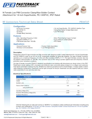RF Connectors Technical Data Sheet PE44727