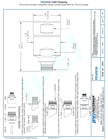 PE45036 CAD Drawing N Female Connector Clamp/Non-Solder Contact Attachment for 7/8 inch annular © 2014 Pasternack Enterprises All Rights Reserved PE45036 REV 1.0 3