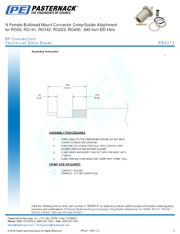 any representation or warranty regarding the suitability of the part described herein for any particular purpose, and Pasternack does not assume any liability arising out of the use of any part or documentation.
