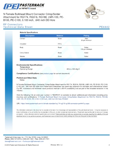 any representation or warranty regarding the suitability of the part described herein for any particular purpose, and Pasternack does not assume any liability arising out of the use of any part or documentation.
