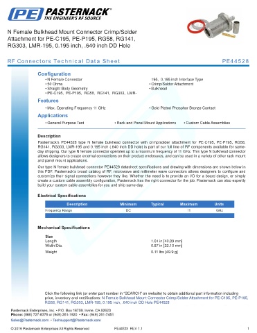 this PDF. Pasternack’s broad catalog of RF, microwave and millimeter wave connectors allows designers to configure and