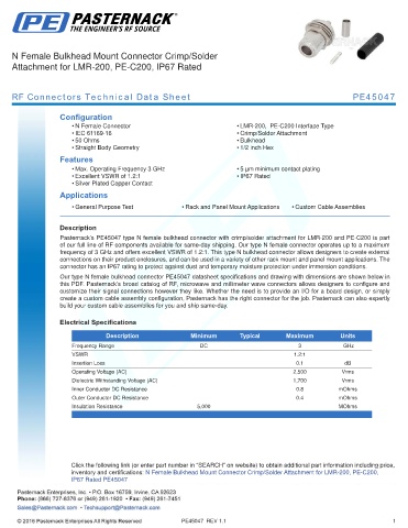 this PDF. Pasternack’s broad catalog of RF, microwave and millimeter wave connectors allows designers to configure and
