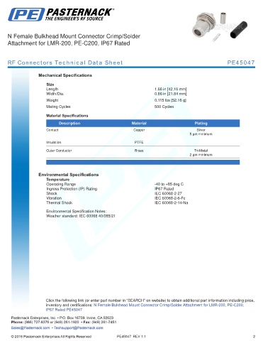 RF Connectors Technical Data Sheet PE45047