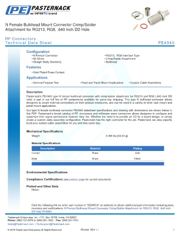 this PDF. Pasternack’s broad catalog of RF, microwave and millimeter wave connectors allows designers to configure and