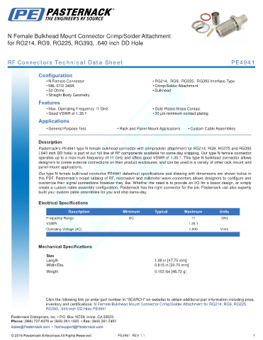 this PDF. Pasternack’s broad catalog of RF, microwave and millimeter wave connectors allows designers to configure and