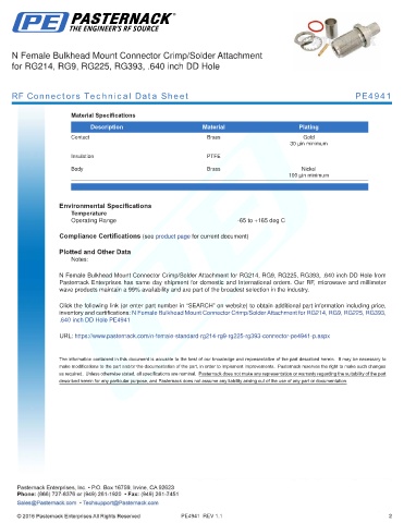 RF Connectors Technical Data Sheet PE4941