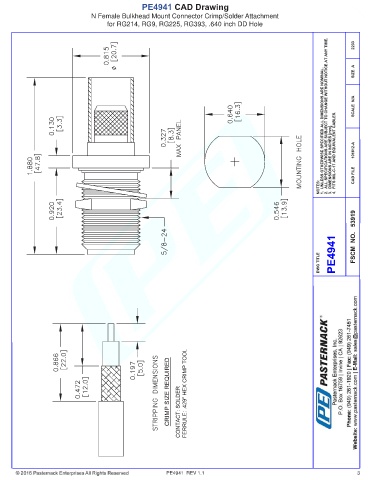 PE4941 CAD Drawing N Female Bulkhead Mount Connector Crimp/Solder Attachment for RG214, RG9, RG225, RG393, .640 inch DD Hole PE4941 REV 1.1 3