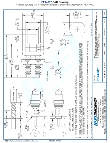 PE44807 CAD Drawing N Female Bulkhead Mount Precision Connector Clamp/Solder Attachment for PE-P300LL PE44807 REV 1.1 4