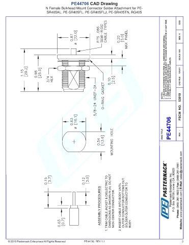 PE44706 CAD Drawing N Female Bulkhead Mount Connector Solder Attachment for PE- SR405AL, PE-SR405FL, PE-SR405FLJ, PE-SR405TN, RG405 PE44706 REV 1.1 3