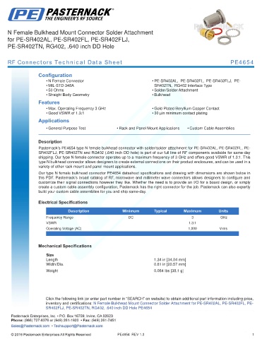 RF Connectors Technical Data Sheet PE4654