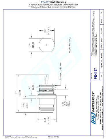 PE4137 CAD Drawing N Female Bulkhead Mount Pressurized Connector Solder Attachment Solder Cup Terminal, .640 inch DD Hole PE4137 REV 2.0 3