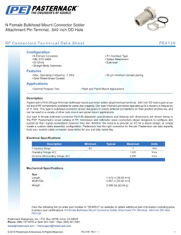 this PDF. Pasternack’s broad catalog of RF, microwave and millimeter wave connectors allows designers to configure and