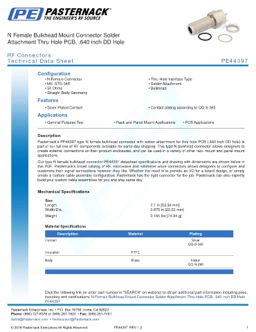 this PDF. Pasternack’s broad catalog of RF, microwave and millimeter wave connectors allows designers to configure and