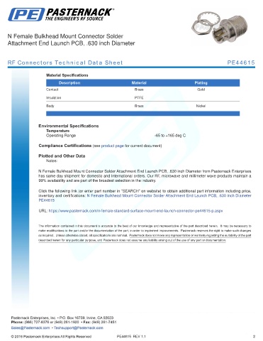 RF Connectors Technical Data Sheet PE44615