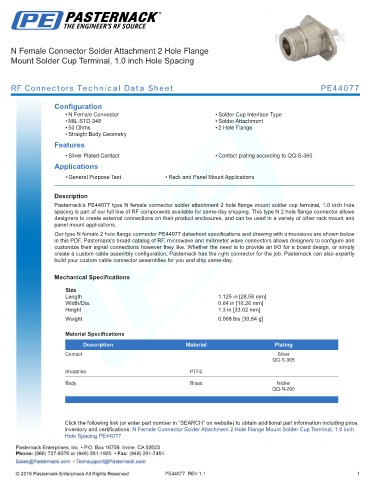 RF Connectors Technical Data Sheet PE44077