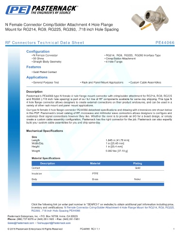 in this PDF. Pasternack’s broad catalog of RF, microwave and millimeter wave connectors allows designers to configure and