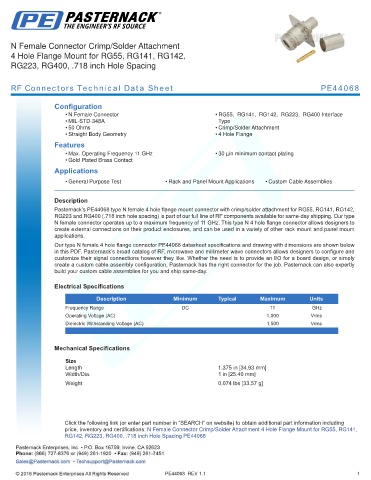 in this PDF. Pasternack’s broad catalog of RF, microwave and millimeter wave connectors allows designers to configure and