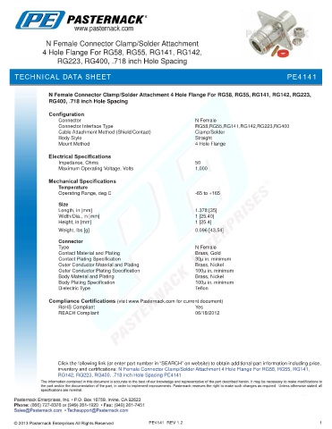 Compliance Certifications (visit www.Pasternack.com for current document)