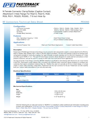 in this PDF. Pasternack’s broad catalog of RF, microwave and millimeter wave connectors allows designers to configure and