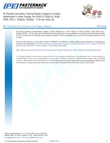 RF Connectors Technical Data Sheet PE4060