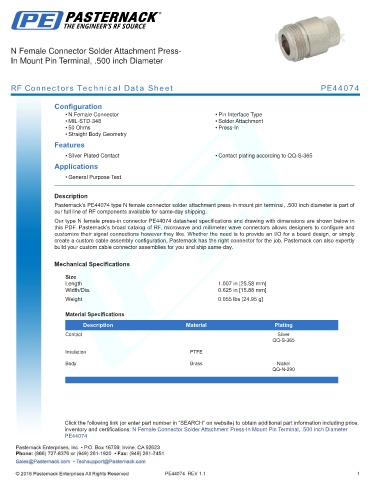 this PDF. Pasternack’s broad catalog of RF, microwave and millimeter wave connectors allows designers to configure and