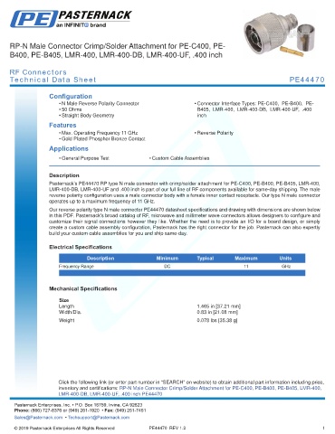 in this PDF. Pasternack’s broad catalog of RF, microwave and millimeter wave connectors allows designers to configure and