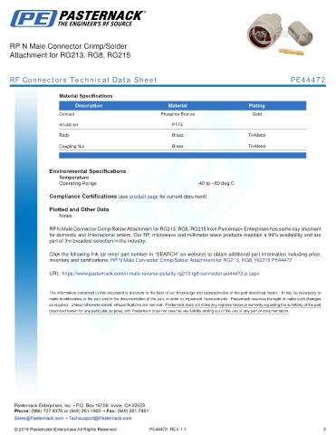 RF Connectors Technical Data Sheet PE44472