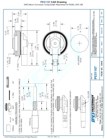 PE51167 CAD Drawing NMO Mount Connector Crimp/Solder Attachment for RG58, LMR-195 PE51167 REV 1.0 3