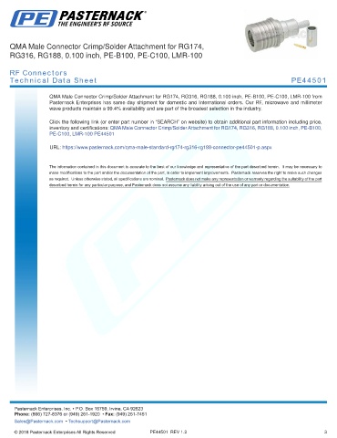 any representation or warranty regarding the suitability of the part described herein for any particular purpose, and Pasternack does not assume any liability arising out of the use of any part or documentation.