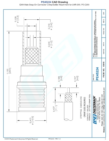 PE45224 CAD Drawing QMA Male Snap-On Connector Crimp/Solder Attachment for LMR-200, PE-C200 PE45224 REV 1.0 3