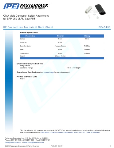 any representation or warranty regarding the suitability of the part described herein for any particular purpose, and Pasternack does not assume any liability arising out of the use of any part or documentation.