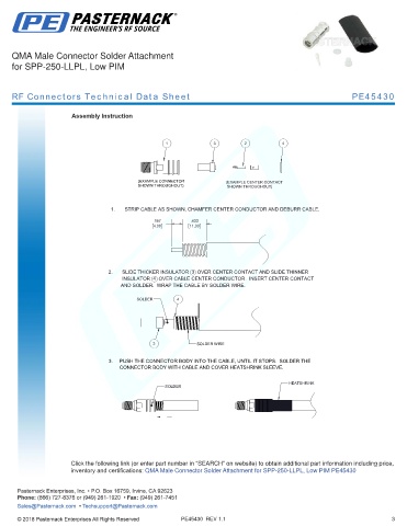 any representation or warranty regarding the suitability of the part described herein for any particular purpose, and Pasternack does not assume any liability arising out of the use of any part or documentation.