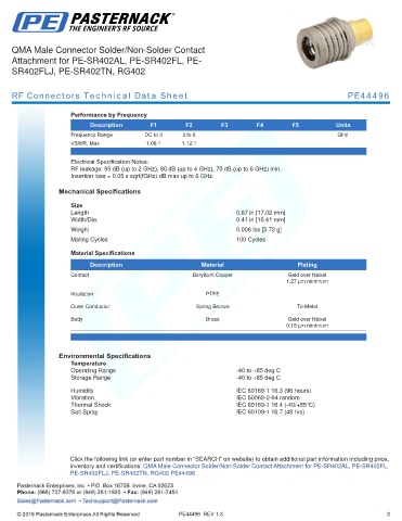 inventory and certifications: QMA Male Connector Solder/Non-Solder Contact Attachment for PE-SR402AL, PE-SR402FL,