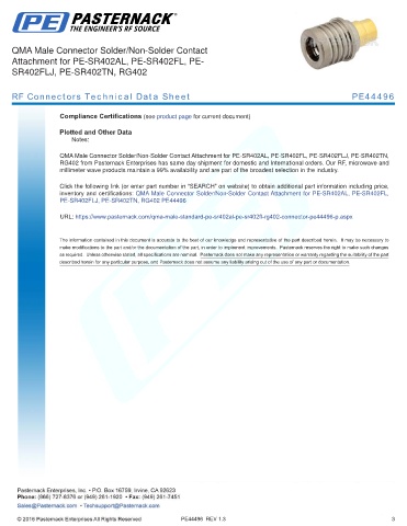 inventory and certifications: QMA Male Connector Solder/Non-Solder Contact Attachment for PE-SR402AL, PE-SR402FL,