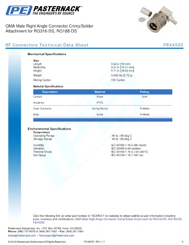 price, inventory and certifications: QMA Male Right Angle Connector Crimp/Solder Attachment for RG316-DS, RG188-DS