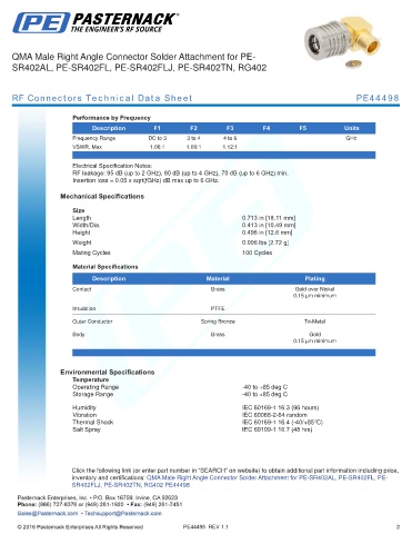 RF Connectors Technical Data Sheet PE44498