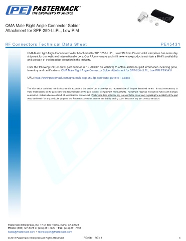 any representation or warranty regarding the suitability of the part described herein for any particular purpose, and Pasternack does not assume any liability arising out of the use of any part or documentation.