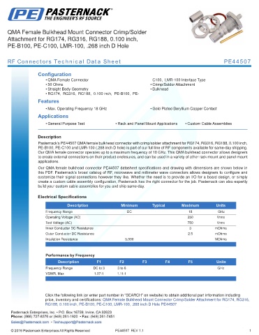 this PDF. Pasternack’s broad catalog of RF, microwave and millimeter wave connectors allows designers to configure and
